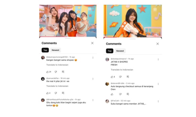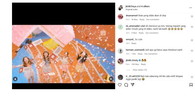 Tak sedikit pula yang mengungkapkan bahwa mereka sangat suka iklan terbaru Shopee dan JKT48 karena visual dan energinya yang menyenangkan. Bahkan saking serunya, para member JKT48 juga membagikan ulang cuplikan MV tersebut di media sosial pribadi mereka, menunjukkan antusiasme dan kebanggaan terhadap kolaborasi ini.